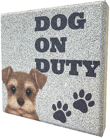DOG ON DUTY、愛らしい犬の姿が描かれたワンちゃん平板ブロックです。このブロックはミニチュア・シュナウザーの表情豊かなイラストが特徴で、玄関先やリビングなどのインテリアに最適です。存在感のあるデザインが、温かみを与えてくれます。