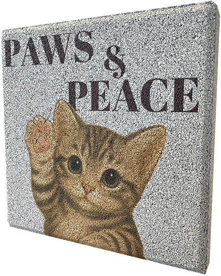 玄関先に置いて、訪れる人々を楽しくお出迎え!にゃんこの平板ブロック「PAWS&PEACE」は、猫好きにはたまらないかわいさが詰まった平板ブロックです。繊細に描かれた猫のイラストが印象的で、お庭や玄関先に置くだけでほっこりとしたムードが演出できます。