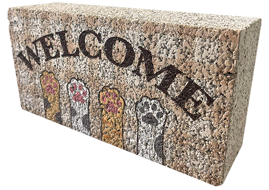 玄関先のオシャレ演出には、この「ペットのWelcomeレンガブロック」がぴったり!レンガ調のデザインに、かわいい猫と犬の肉球のイラストが施されています。玄関先で訪れる方々を温かく出迎えます。